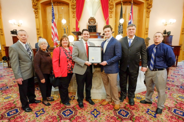 COLUMBUS—Today, State Representative Rob McColley (R-Napoleon) presented a resolution honoring Sam Meece on winning the 2016 Division II State Championship in the discus.