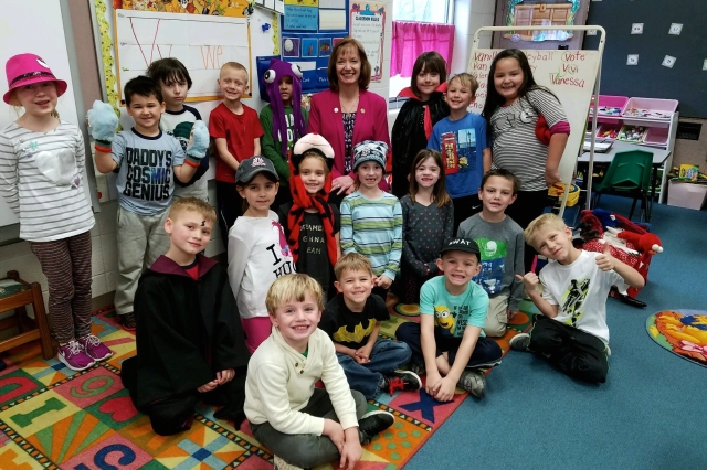 INDEPENDENCE—State Representative Marlene Anielski (R-Walton Hills) participated in Independence Primary School’s annual Right to Read Week. She shared her love of books with a rapt audience of kindergarten students. Rep. Anielski shared one of her favorite children’s books entitled “The Best Week Ever.” Resplendent with props, she told the story of how the main character, armed with his magic potions, had the best week ever.