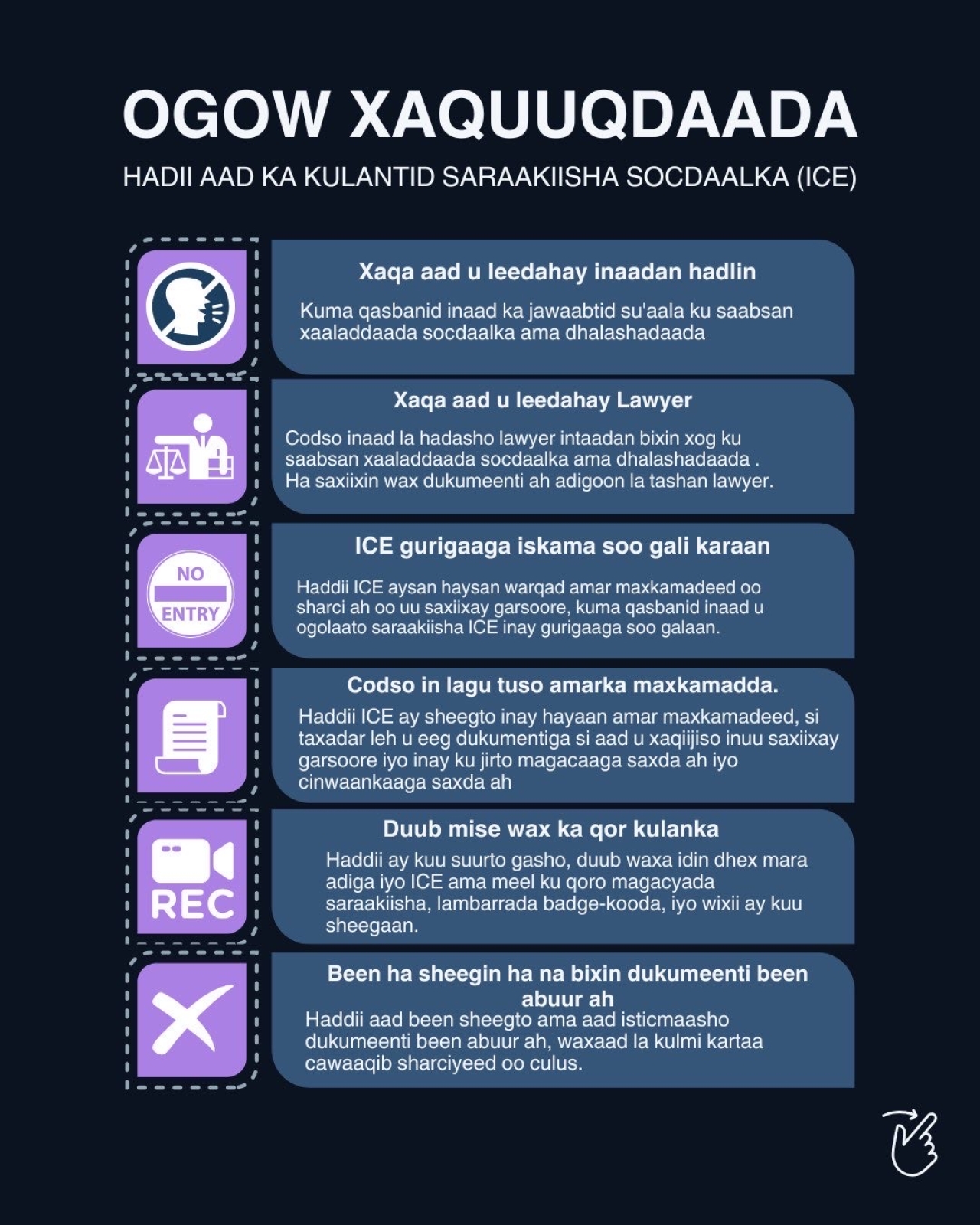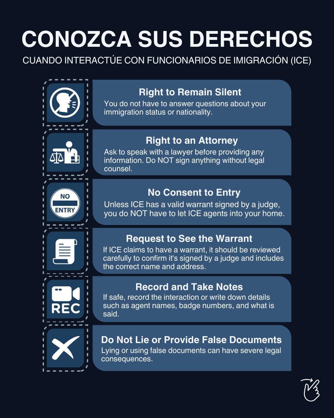 And we will continue to organize, and lead, because our presence here is not a mistake or a burden. It is a strength. Make no mistake we will make a plan to keep our communities safe and secure. In the meantime, share these ‘know your rights’ graphics and keep an eye out for each other.