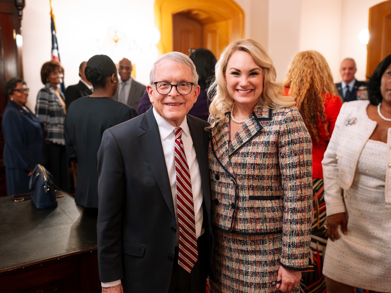 Major General (Ret.) John Harris, Jr., Director of the Ohio Department of Veterans Services, was also present, along with senior military leaders, veterans, community advocates, and individuals who played key roles in advancing the legislation. Among those in attendance were representatives from the Ohio Department of Veterans Services, the Ohio National Guard, the United States Air Force, veteran service organizations, community leaders affiliated with the Adams family, and citizens who provided testimony in support of the bill.